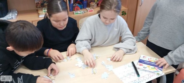 Во время занятия ребята совершили увлекательное путешествие в прошлое, разгадывая зашифрованные послания предков «Расшифруй шифр предков», творчески работали над созданием семейных реликвий, рисовали узоры и орнаменты, совершали виртуальные экскурсии по историческим местам городов России: Москва, Тюмень, Санкт-Петербург, Салехард. Юные исследователи составляли оригинальные предложения из семи слов, отображающие особенности нашего северного края, а в финале сумели открыть старый сундук, в котором обнаружили спрятанное сокровище.